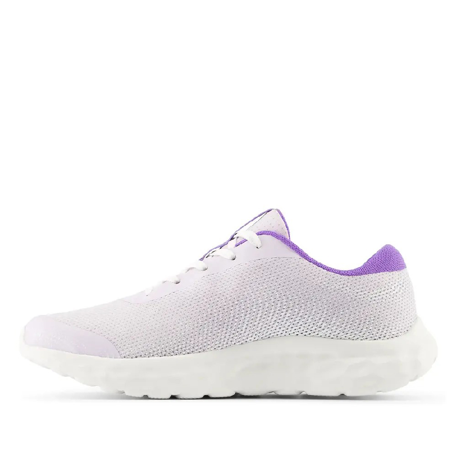 Le sneakers New Balance 520 presentano una tomaia in tessuto bianco con l’audace logo N e dettagli viola per un tocco di colore divertente.
