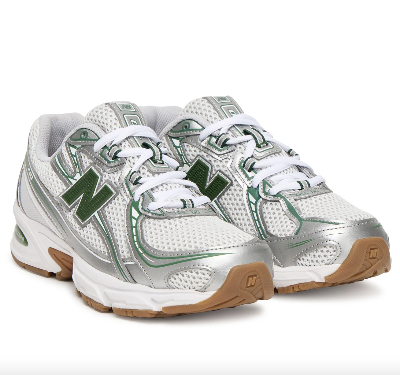 Sneakers 740 grigie e verdi in mesh, con suola in gomma, lacci e intersuola che assorbe l’impatto attraverso una combinazione di ammortizzazione e resistenza alla compressione. Sono decorate con logo laterale.